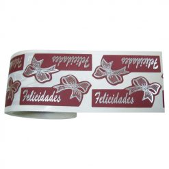 El adhesivo de la etiqueta Felicidades lazo granate de 27×60 mm. puede durar más de 3 años una vez abierto; Para prolongar la vida útil del adhesivo se aconseja conservar con temperatura y humedad moderada, pegar sobre superficies lisas, limpias y secas.