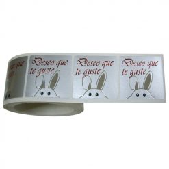 El adhesivo de la etiqueta Deseo que te guste conejo plata de 35×35 mm. puede durar más de 3 años una vez abierto.