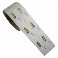 El material utilizado para esta etiqueta es papel adhesivo de 100 gr. color vainilla suave mate.
